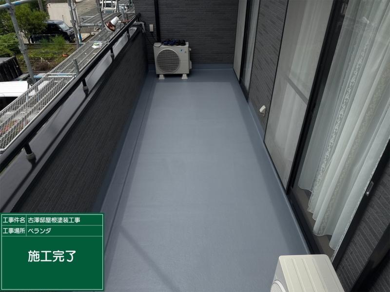 施工前の写真になります。トップコートは防水層を保護し、ベランダの寿命を伸ばすために重要な役割を果たします。