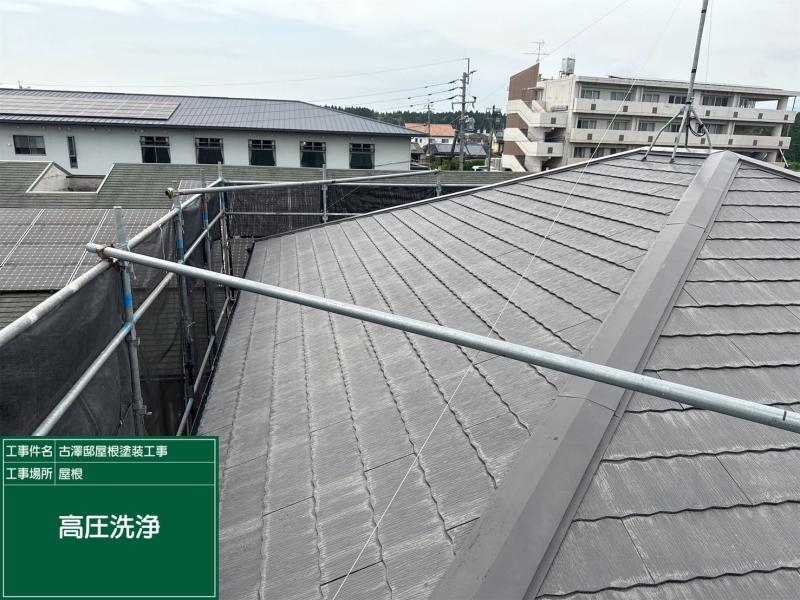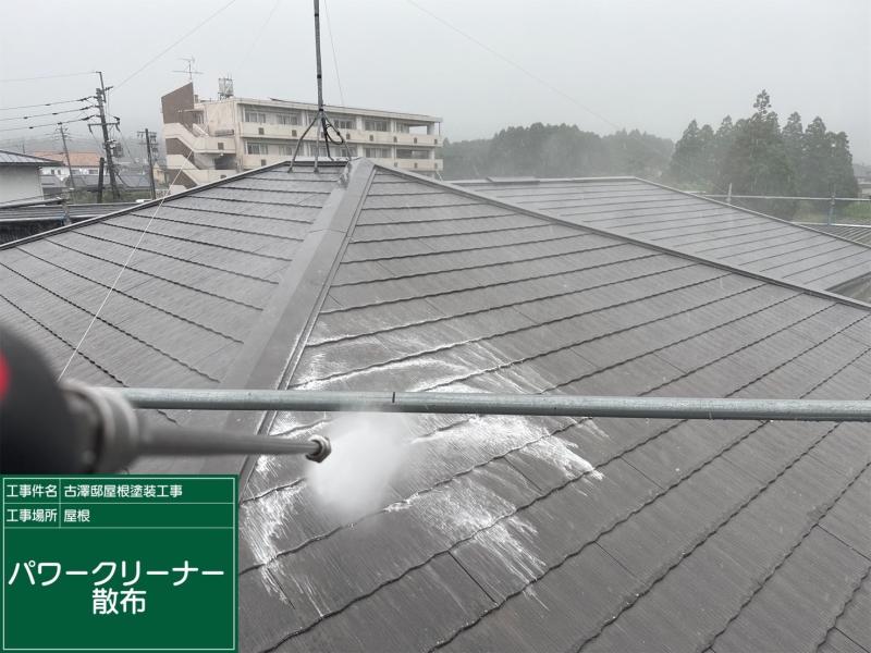 バイオ洗浄で屋根に付着した汚れゴミ、傷んだ旧塗膜をキレイに洗い流します