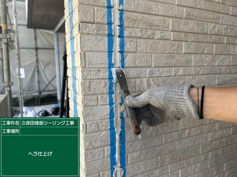 外壁色に合わせたコーキングを使用します。(ホソビキホワイト)