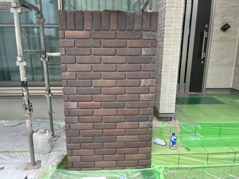 ブロックで詰んだ門柱はこのようにヒビが目立つことがよくあります。