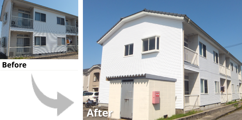 外壁や屋根のリフォームをする事で、強靭な塗膜やサイディングなどの建材で紫外線や雨・風から建物を守ることが出来るため、長期的に美観を維持することが出来ます。また、雨漏りなどの心配も減り、より安定した不動産での収入を得ることに繋がります。